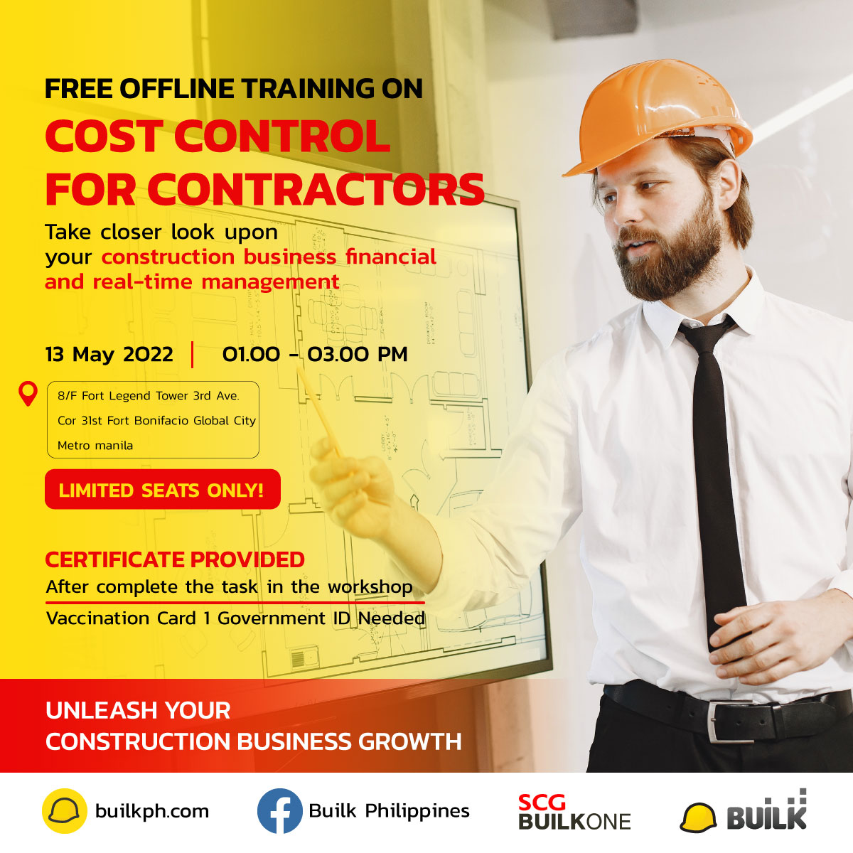 is a free workshop for the contractor to manage their construction business cost with new technology – BUILK is a 100% all-time FREE software that we designed for SMEs contractor. We believed that with BUILK, Our goal is to revolutionize the construction industry in the Philippines by increasing work efficiency and reduce the risk of doing business By bringing knowledge of new technologies and creative ideas for the construction industry.