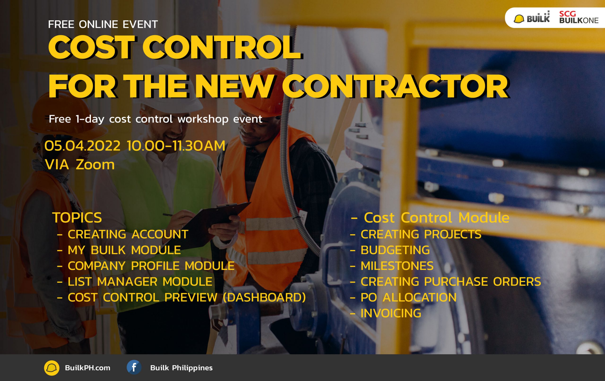 is a free online workshop for the contractor to manage their construction business cost with new technology – BUILK is a 100% all-time FREE software that we designed for SMEs contractor. We believed that with BUILK, Our goal is to revolutionize the construction industry in the Philippines by increasing work efficiency and reduce the risk of doing business By bringing knowledge of new technologies and creative ideas for the construction industry.