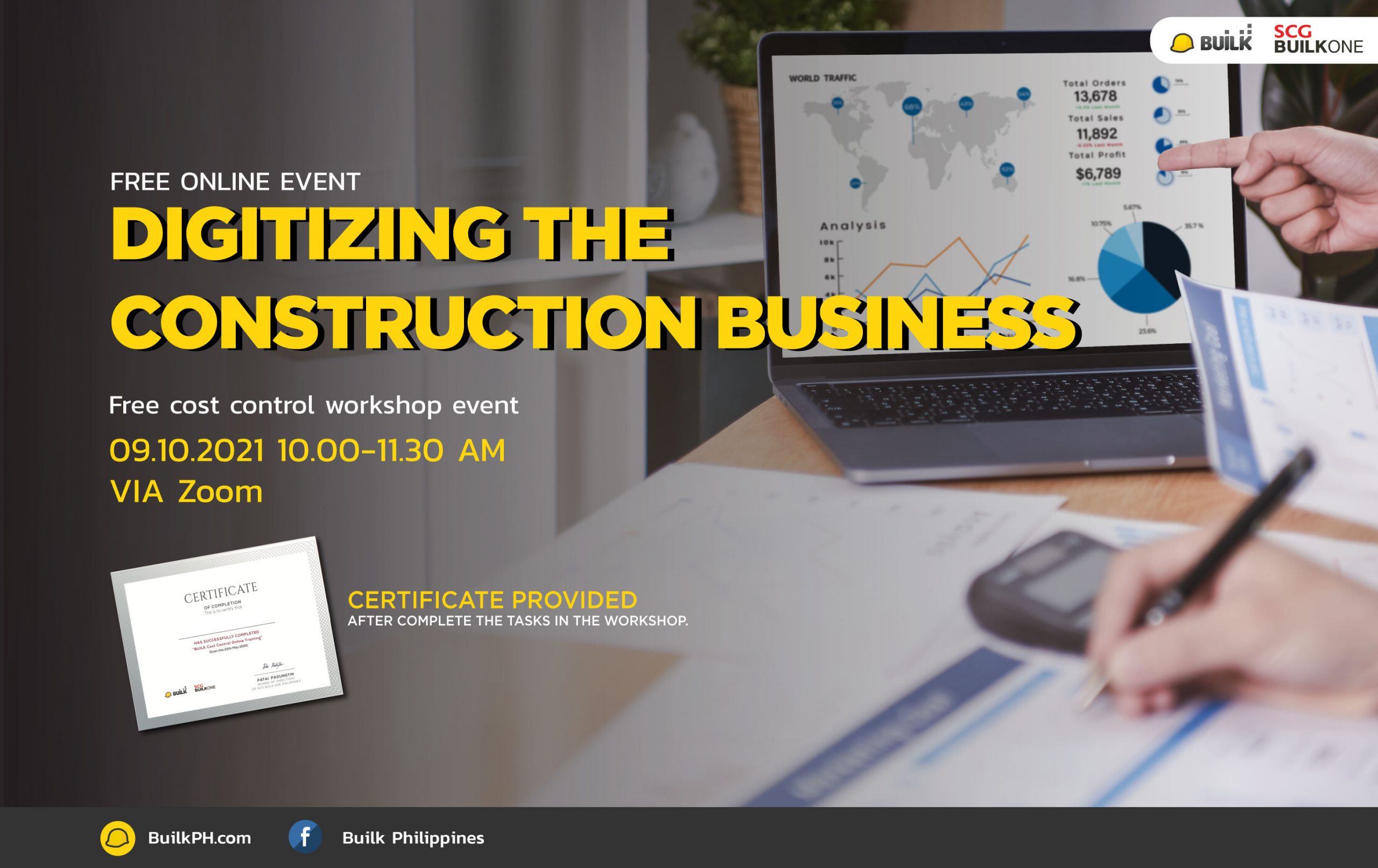 is a free online workshop for the contractor to manage their construction business cost with new technology – BUILK is a 100% all-time FREE software that we designed for SMEs contractor. We believed that with BUILK, Our goal is to revolutionize the construction industry in the Philippines by increasing work efficiency and reduce the risk of doing business By bringing knowledge of new technologies and creative ideas for the construction industry.