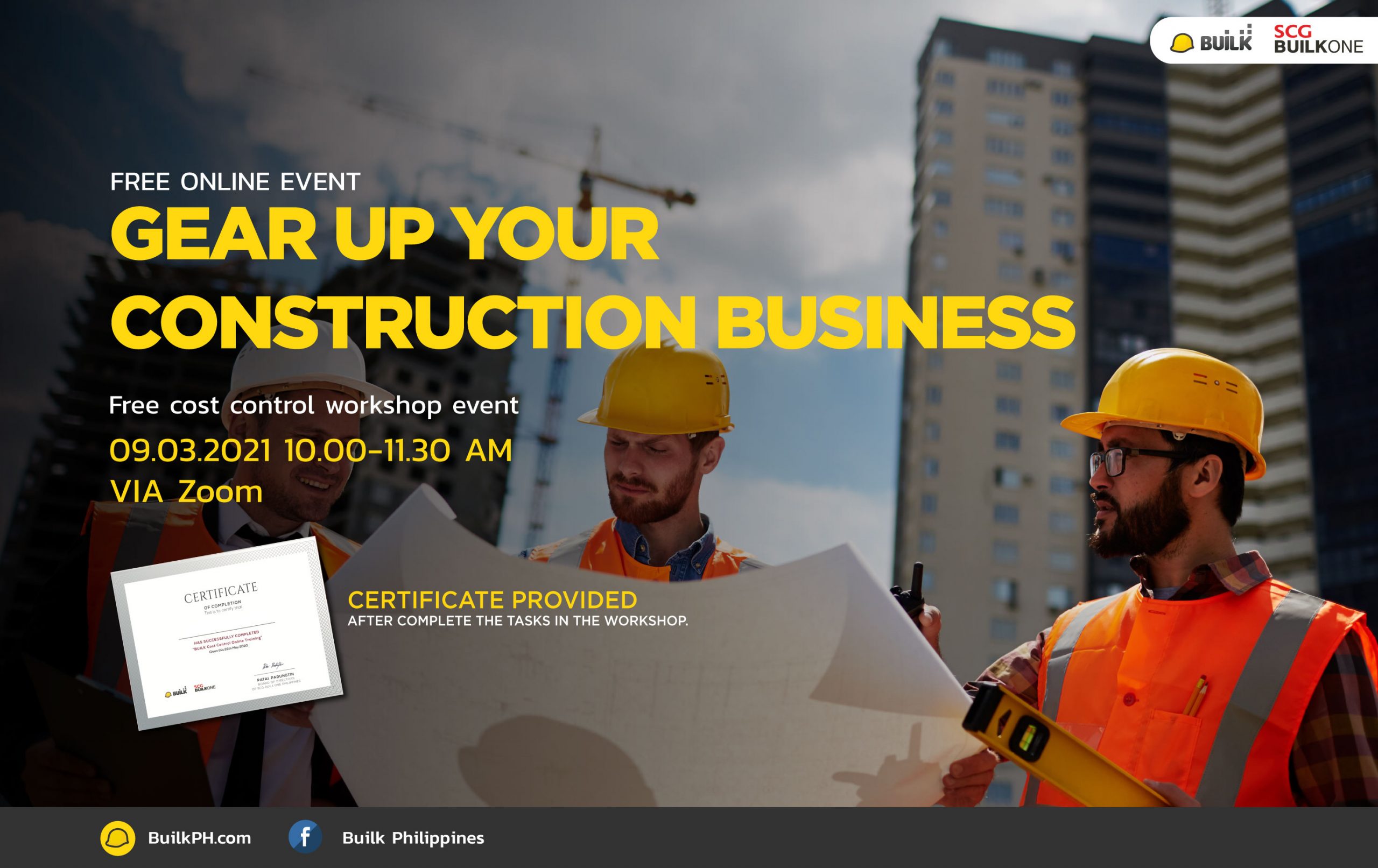 is a free online workshop for the contractor to manage their construction business cost with new technology – BUILK is a 100% all-time FREE software that we designed for SMEs contractor. We believed that with BUILK, Our goal is to revolutionize the construction industry in the Philippines by increasing work efficiency and reduce the risk of doing business By bringing knowledge of new technologies and creative ideas for the construction industry.